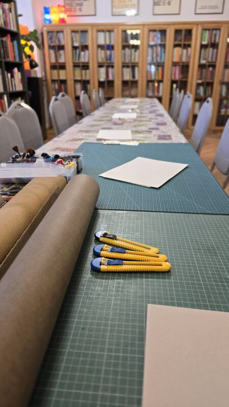 Warsztaty introligatorskie (zarówno notesów w formie szytej na grzbiecie jak i klasycznej, twardej oprawy) są dostępne dla grup zorganizowanych (od 4 osób).