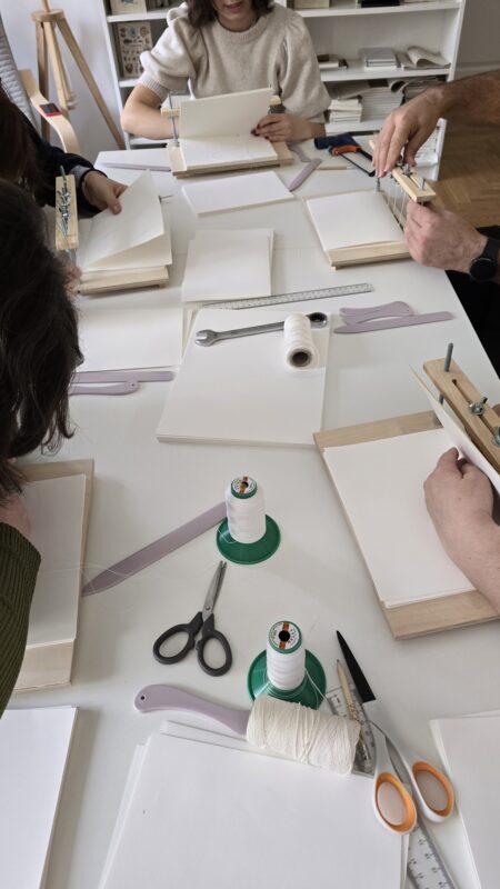 I tak oto w małym gronie powstały od zera piękne notatniki w twardej, lnianej oprawie.